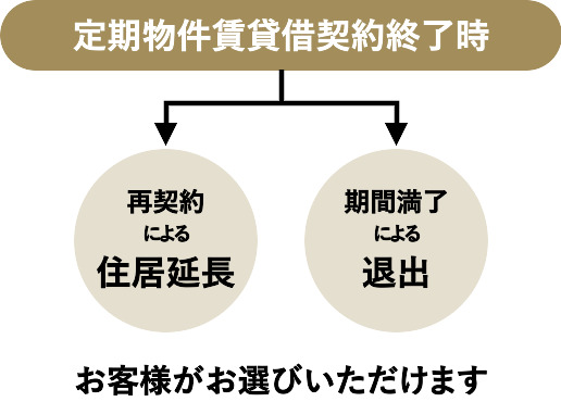 不動産売買契約と同時に定期建物賃貸借契約を締結し、所有者から借主になることで住み続けていただけます。